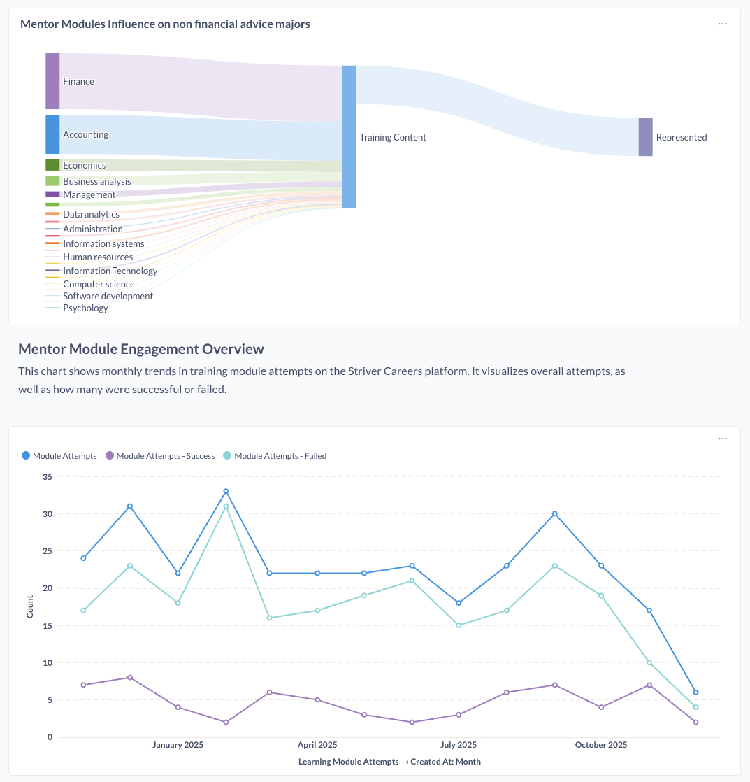 We transform real candidate behaviour into clear, actionable intelligence. By combining Striver’s proprietary engagement, assessment, and training data with market, social, and public datasets, we reveal what actually drives success in early-career financial planning — and where partners can intervene for the greatest impact.